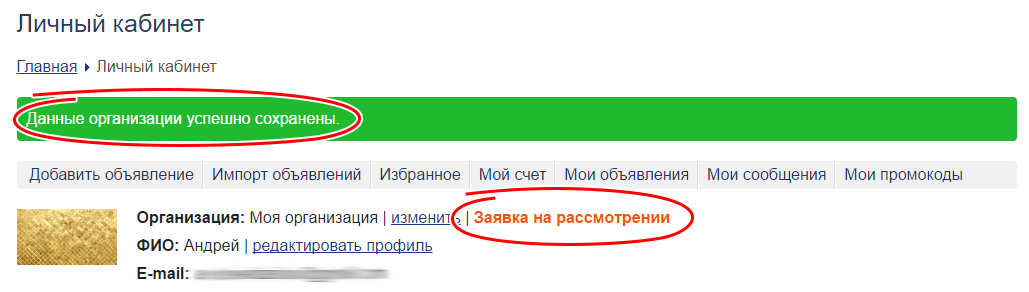 На страницах всех объявлений "представителя" организации появится новое поле с названием и логотипом опубликованной организации.